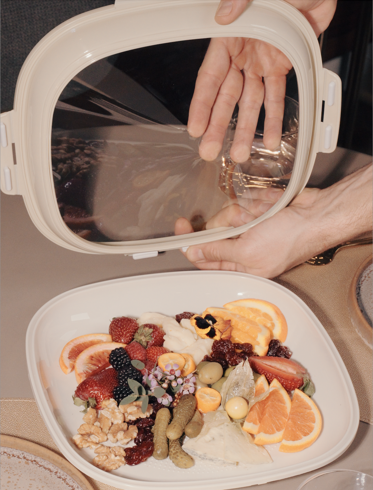 Designed to fit seamlessly into your bustling life, this eco-friendly, stackable tray keeps your snacks delightfully fresh - whether stored in the fridge, nestled in your lunch bag, or joining you on the go.